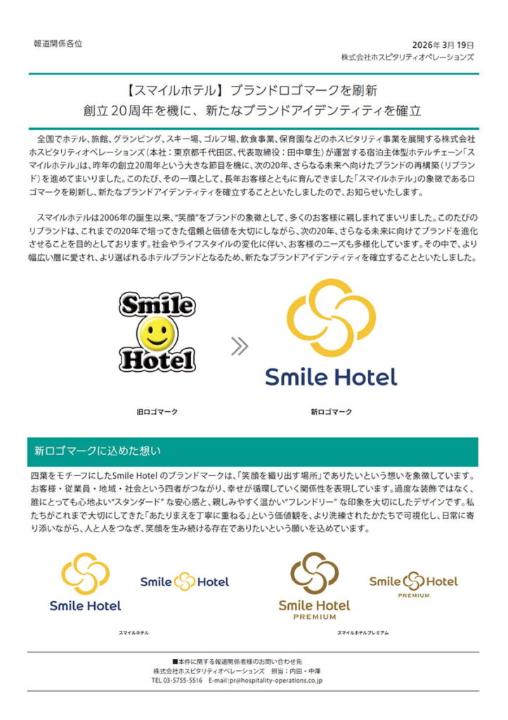 【スマイルホテル】ブランドロゴマークを刷新!創立20周年を機に、新たなブランドアイデンティティを確立